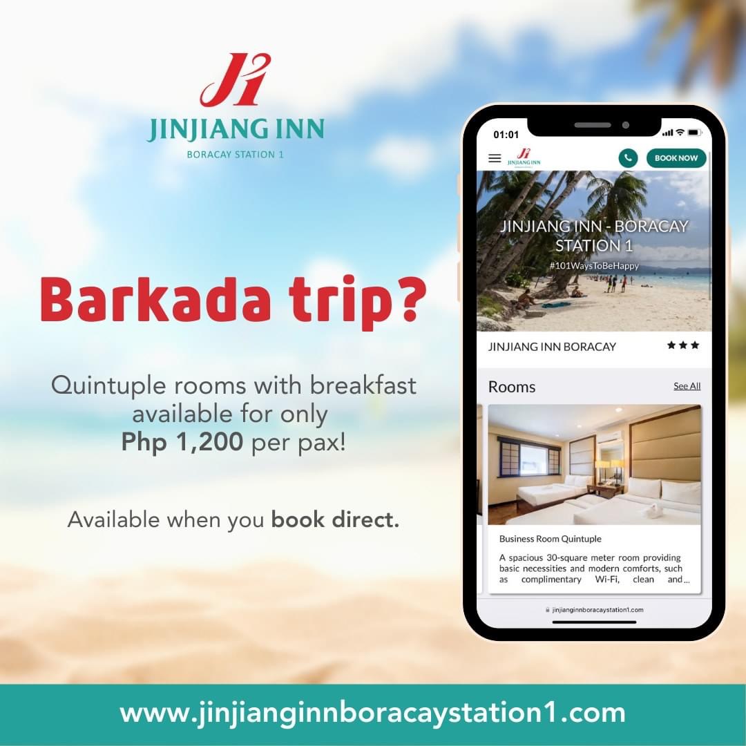 Jinjiang Inn - Boracay Station 1 is only a 2-minute walk from the famed Boracay White Beach! Take the whole barkada or family on a comfortable trip for only Php 1,200 per person, minimum of 3 per room and maximum of 5 persons in the room. Comes with set breakfast.